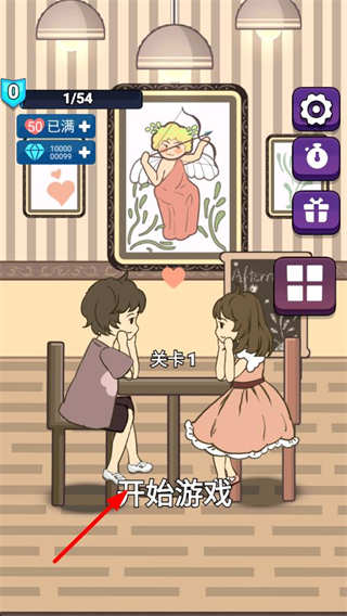 1、選擇關卡1,點擊開始游戲按鈕,即可開啟對應的闖關流程,推進約會主題的游戲進程。