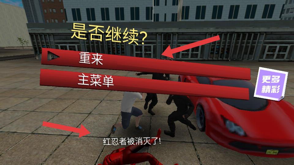 4、若角色被消滅,會出現是否繼續的提示,可選擇重來重新開始戰斗,也能選主菜單回到游戲初始界面。