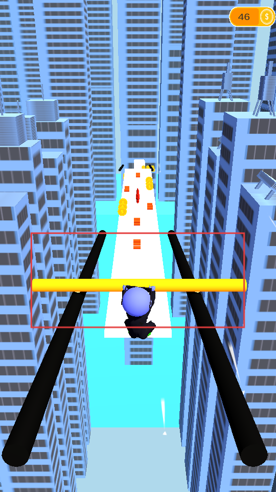 2、角色會借助黃顏色橫桿,在兩側有黑色管道的區域移動,繼續收集金幣,注意保持平衡,順利通過狹窄路段。