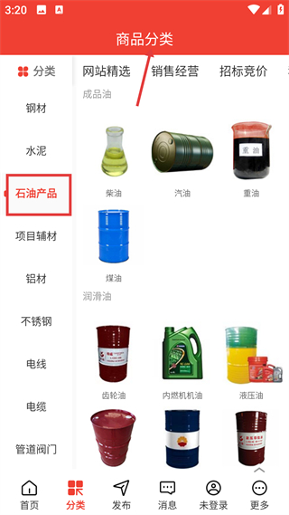 2、分類模塊按品類細分商品,以石油產品為例展示柴油等子類,助力用戶快速定位目標商品類別。
