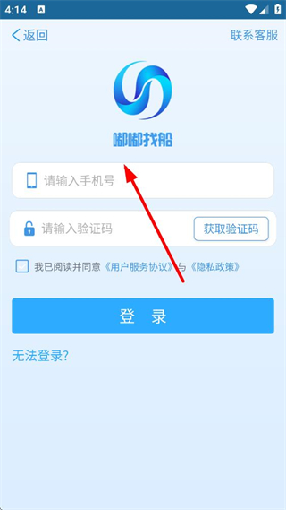 4、賬號注銷完成后回到登錄界面,界面顯示請輸入手機號等登錄選項,可重新進行嘟嘟找船的賬號登錄操作。