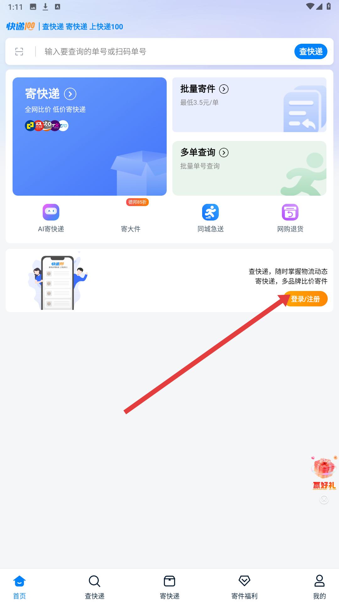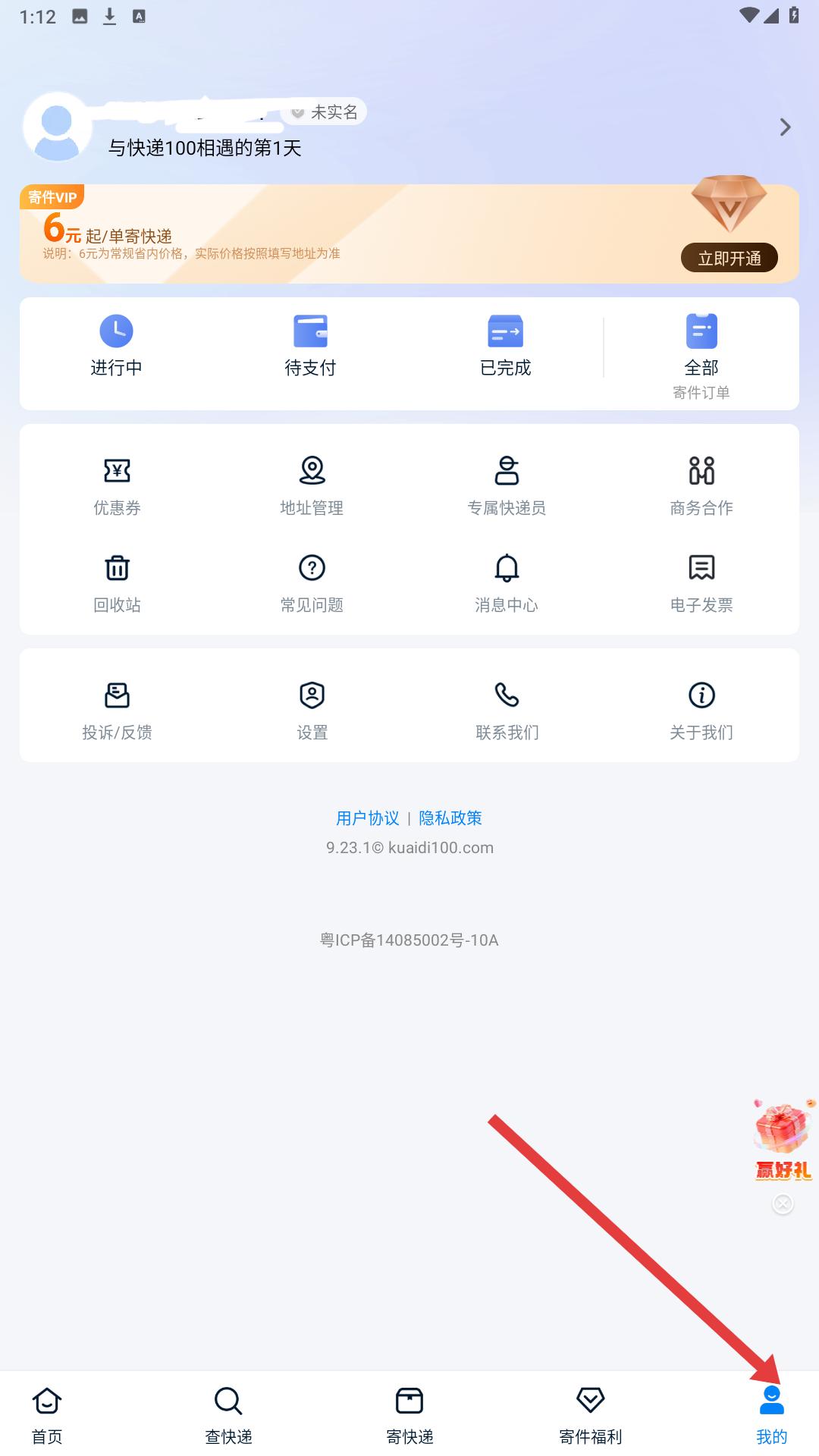 4、登錄后進入我的頁面,可查看寄件訂單狀態、管理地址、使用優惠券等多項功能,方便進行快遞相關操作。