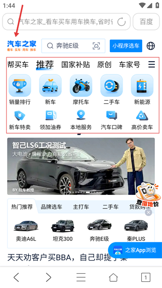 2、汽車之家頁面,可使用看車、購車等功能,涵蓋新車、二手車等分類,還能查看車型評測與行業資訊,助力選車決策。