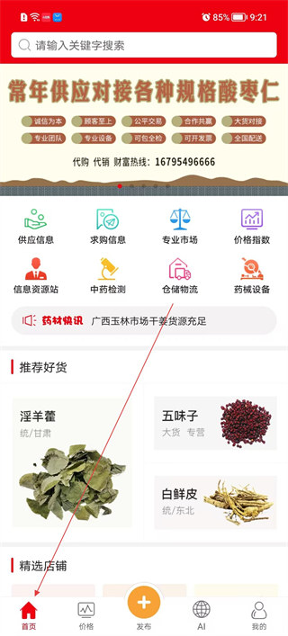 1、打開軟件進入首頁,瀏覽常年供應的酸棗仁信息,查看供應信息求購信息等功能入口,也能瀏覽推薦好貨及精選店鋪內容。