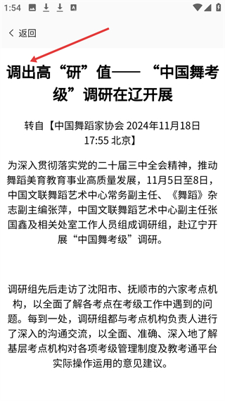 3、調出高研值中國舞考級’調研在遼開展新聞,介紹中國文聯舞蹈藝術中心調研組赴遼寧調研中國舞考級工作的情況。