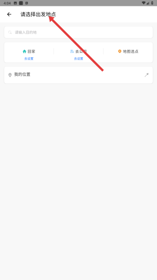 3、請選擇出發地點頁面,可輸入或選擇出發的地點,確定行程的起點。