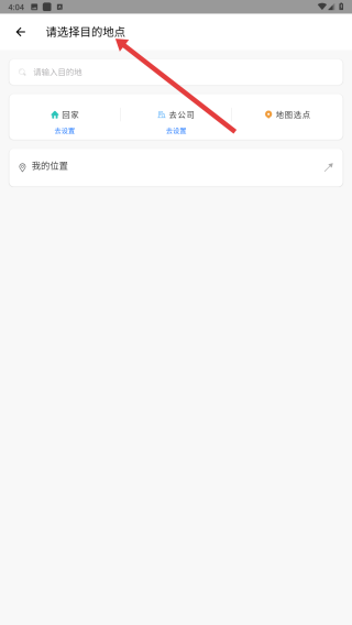 4、確定出發地點后,接著在請選擇目的地點頁面,輸入或選擇要前往的目的地,以便獲取導乘信息。