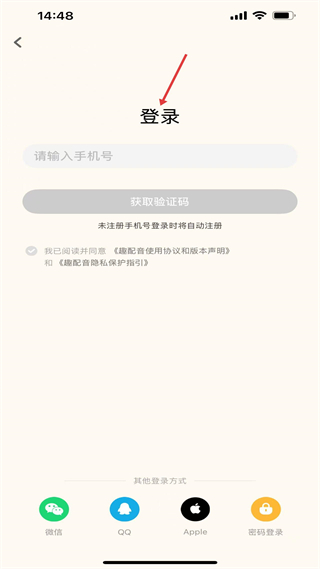 1、登錄頁支持多方式登錄,填手機號可獲驗證碼,未注冊會自動注冊,需勾選同意相關協議才能進入。