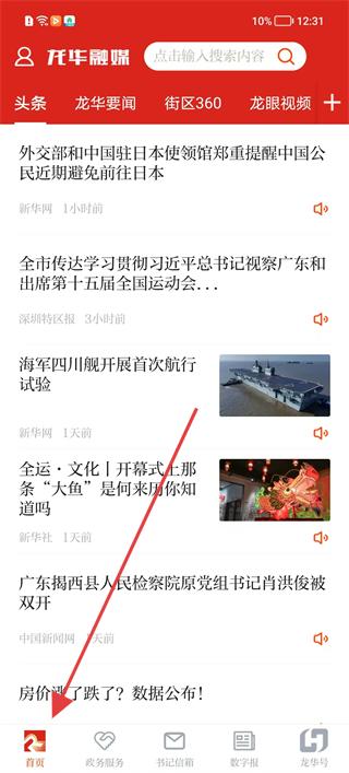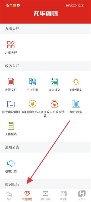 1、打開龍華融媒中心APP,在首頁還可瀏覽各類資訊,了解本地動態,完成政務服務使用、民意提交和資訊瀏。