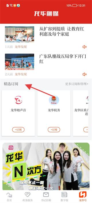 4、瀏覽精選訂閱內容,如龍華她聲音、龍華稅務等訂閱選項,選擇感興趣的訂閱內容進行訂閱。