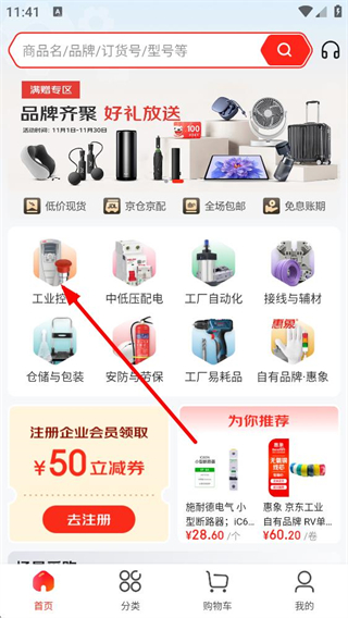 1、進入應用首頁,點擊工業控制等分類入口,可進入對應品類的商品列表頁面,查看該分類下的相關商品。