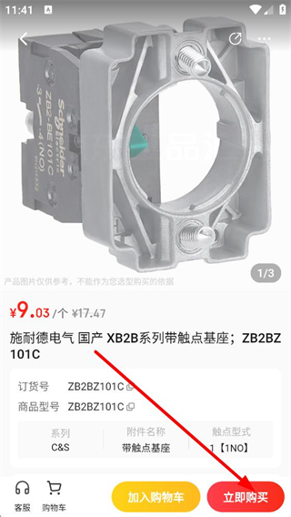 3、商品詳情頁,可查看商品價格、型號等信息,點擊立即購買可直接下單,或點擊加入購物車暫存商品后續結算。