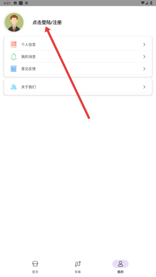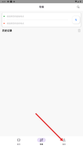 1、打開導航類APP,在“導乘”頁面點擊右下角我的,進入個人相關頁面,準備進行登錄操作。