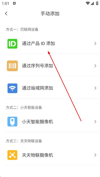 2、進入手動添加頁面選擇通過產品ID添加的方式,也可挑選序列號局域網等其他添加方式,根據設備類型選擇對應的添加渠道。
