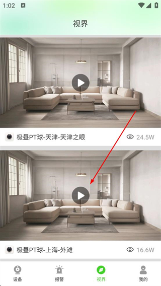 4、進入視界頁面查看已添加設備對應的畫面內容,點擊播放按鈕查看實時畫面,瀏覽不同設備的視界信息,了解設備運行狀態。