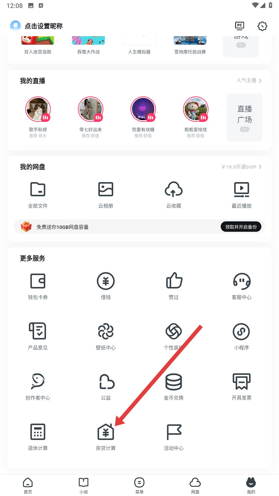 2、個人頁面的更多服務里,找到房貸計算選項,點擊進入房貸計算器界面。