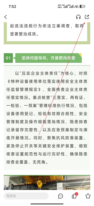 3、在資訊詳情頁面閱讀三舉措守護安全的具體內容,了解監管工作的開展細節,點擊上方的分享按鈕。