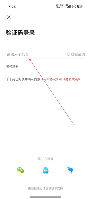 1、打開掌上縉云軟件,進入驗證碼登錄頁面,輸入手機號后點擊獲取驗證碼,勾選已閱讀并同意相關協議,完成賬號登錄。
