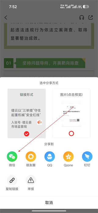 掌上縉云app怎么分享到微信