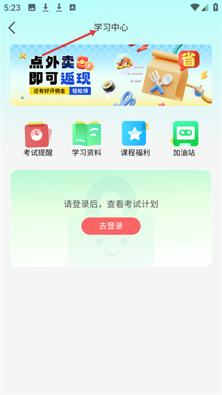 3、學習中心提供考試提醒、學習資料等服務,用戶登錄后可查考試計劃,助力學生學業規劃和知識學習。