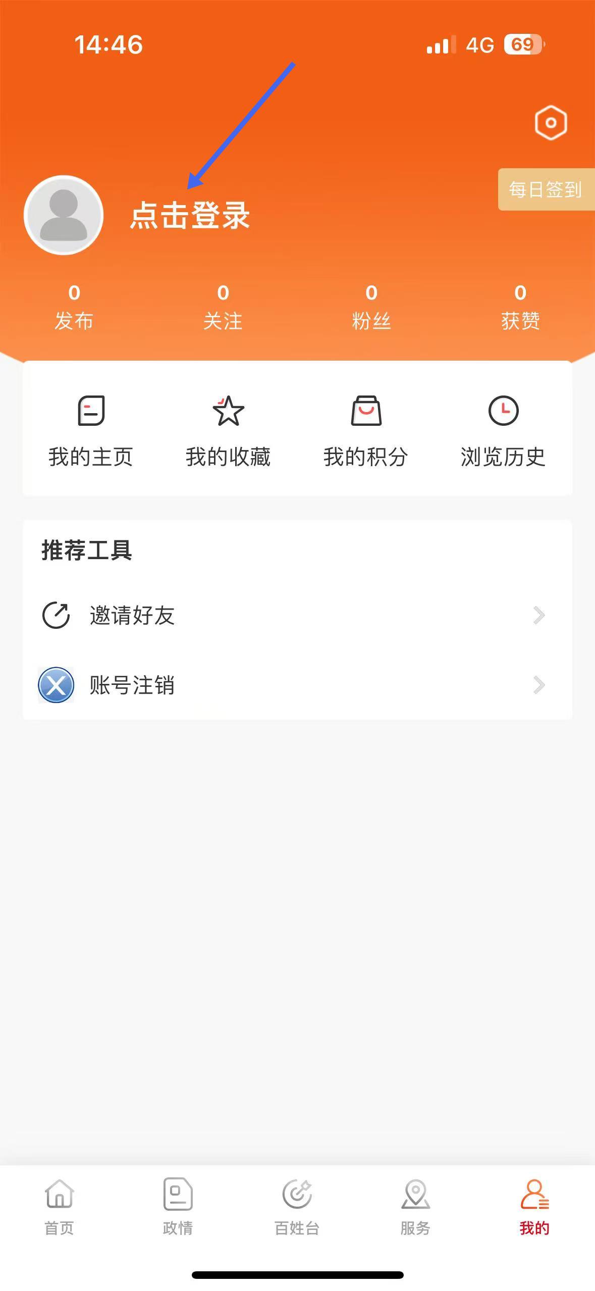 1、我的頁面,點擊登錄按鈕顯眼,登錄后可查看發布、關注等數據,使用賬號注銷等工具。