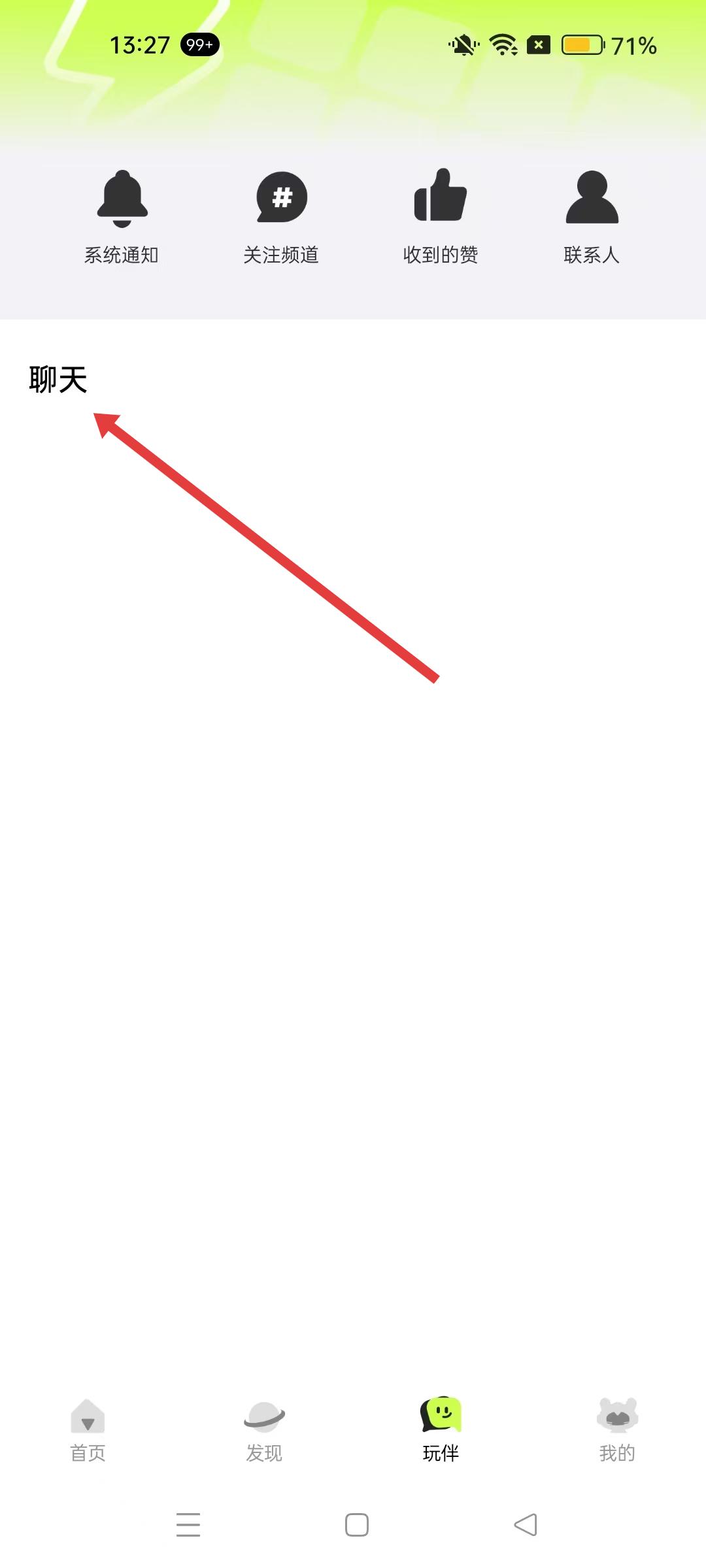 4、進入聊天界面,可查看系統通知、關注頻道等功能入口,便于與其他玩家交流互動,分享游戲體驗。