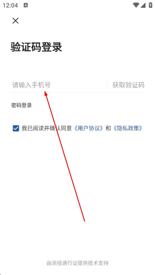 1、打開掌上松陽軟件,進入登錄頁面,選擇驗證碼登錄,勾選用戶協議和隱私政策,輸入手機號,點擊獲取驗證碼,準備完成登錄。