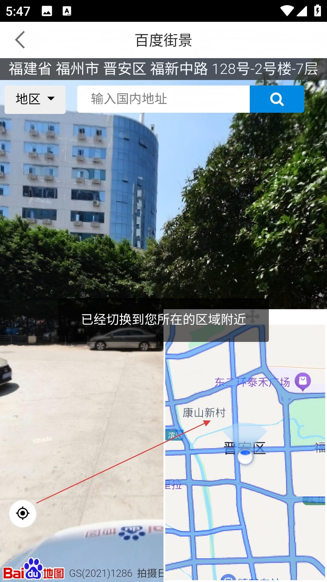 3、在切換圖層后可進入當前區域街景,顯示所在區域附近的地圖圖片,可以直觀了解當前的地點環境。