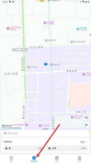 1、打開地圖界面,能看到當前所在區域地圖,底部有常用地點選項,點擊請選擇可進入位置選擇相關操作。