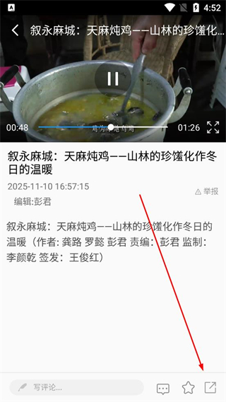 3、進入視頻播放頁面觀看視頻內容了解信息,可暫停播放調整進度,還可以點擊下方的分享按鈕。
