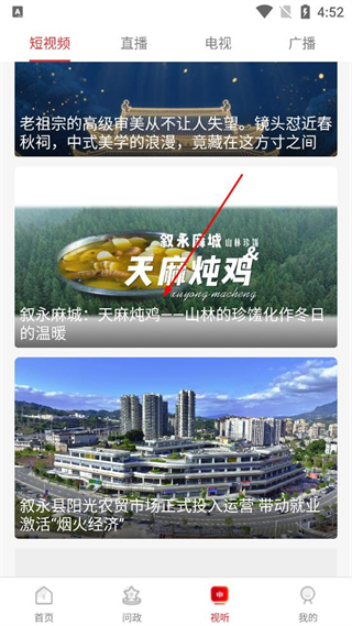 2、登錄后切換到視聽頁面瀏覽短視頻列表,查看各類內容的標題及封面,選擇感興趣的視頻條目,點擊進入該視頻的播放頁面觀看內容。