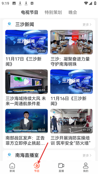 2、電視節目等分類,有三沙新聞往期及南部戰區發聲等特色內容,方便用戶查找觀看各類節目。