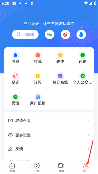 4、我的板塊是個人中心,有登錄入口和消息、收藏等功能入口,用戶可管理個人信息、反饋及投稿。