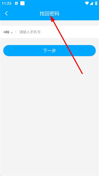 3、找回密碼界面,輸入手機號,點擊下一步,可按照提示流程找回密碼,以便重新登錄APP。