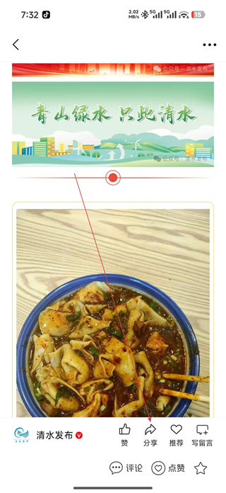 3、進入資訊詳情頁面查看文章中的圖文內容,了解資訊傳遞的信息,可使用贊分享等,點擊下方的分享按鈕分享。