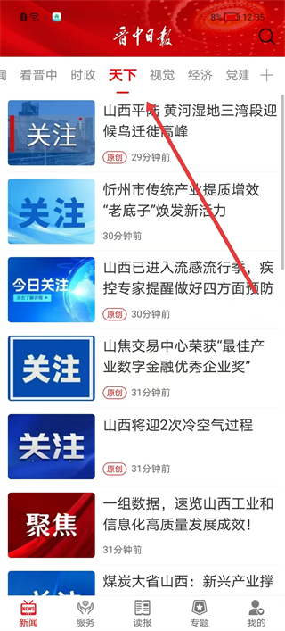 2、點擊天下板塊瀏覽天下新聞,如山西平陸黃河濕地三段灣迎候鳥遷徙高峰、忻州傳統產業提質增效等,關注國內新聞資訊。