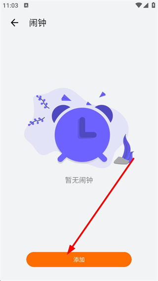 4、進入鬧鐘界面,可添加新鬧鐘,目前暫無設置的鬧鐘,點擊添加按鈕可設置鬧鐘時間,幫助提醒運動、休息等事項。