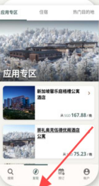 1、在住宿預訂APP中應用專區展示新加坡馨樂庭等公寓酒店,價格清晰,點擊可了解更多住宿詳情。