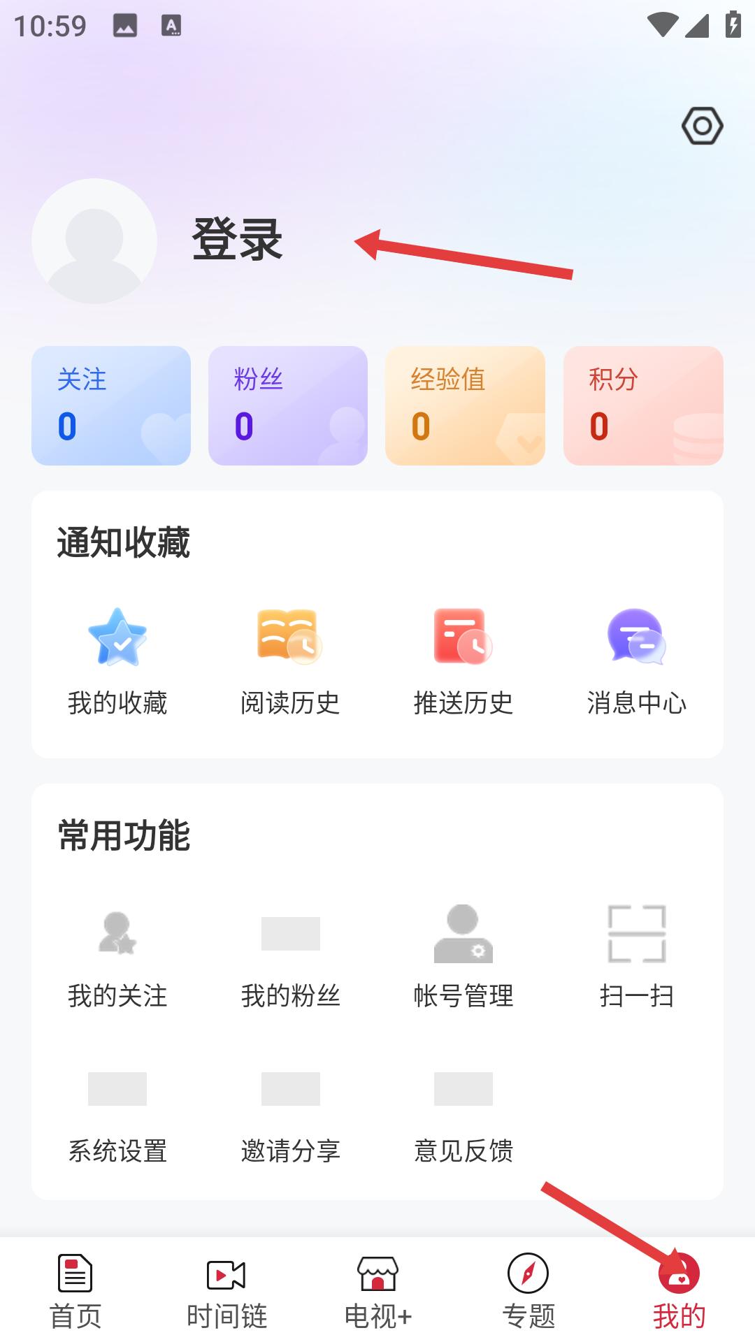 3、點擊底部我的,進入個人頁面,可進行登錄操作,還能查看我的收藏,閱讀歷史等功能選項。
