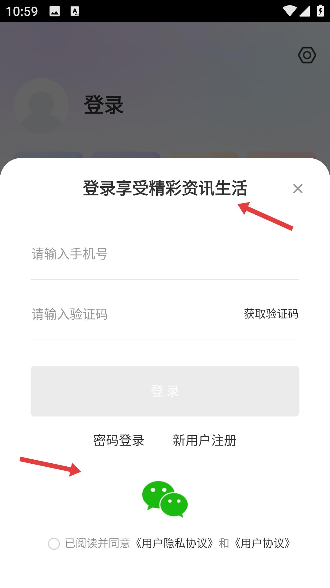 4、登錄時可輸入手機號和驗證碼,也可選擇微信登錄,勾選同意相關協議后完成登錄流程。