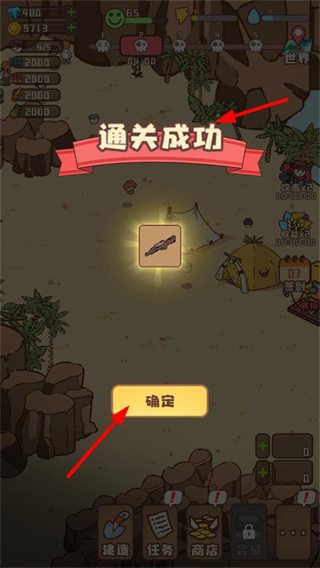 4、通關成功后會出現通關成功的提示,還有對應的獎勵道具,點擊確定按鈕可領取獎勵,繼續進行游戲的后續操作。