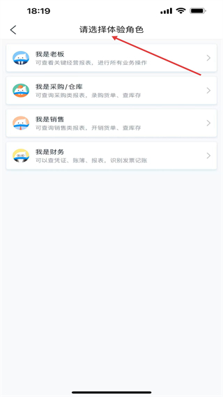 1、角色選擇頁,提供老板采購等多角色,不同角色對應不同權限,老板能看經營報表,采購可查采購類數據。