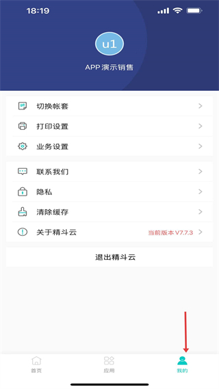 4、我的頁面,可切換賬套做打印等設置,能聯系客服清理緩存,還顯示當前版本,是系統配置的集中入口。