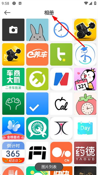 2、點擊圖片編輯后進入相冊頁面,能看到各類圖片資源,可從中選取需要編輯的圖片,選中后即可進入圖片編輯的操作界面。