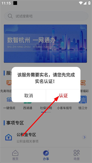 3、若服務需實名,會彈出需完成實名認證的提示框,可選擇認證進入實名認證流程,也可選擇取消暫不認證。