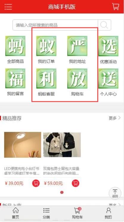 分類搜索功能,能夠讓用戶通過分類來是商品;