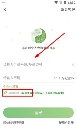 2、進入登錄頁面,勾選同意服務協議和隱私政策,準備完成賬號登錄。