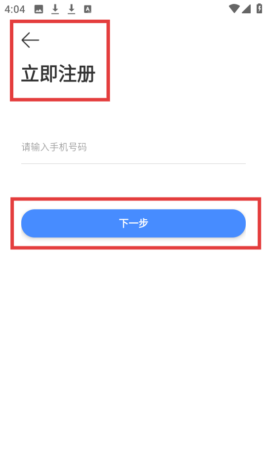 3、注冊頁面標有立即注冊,僅需輸入手機號,點擊下一步便能推進注冊進程輕松開啟使用之旅。