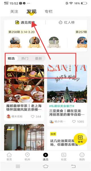 3、通過關注板塊,訂閱感興趣博主或話題,在遇見周游等欄目,查看定期推送的旅行相關內容,掌握旅游新動態。