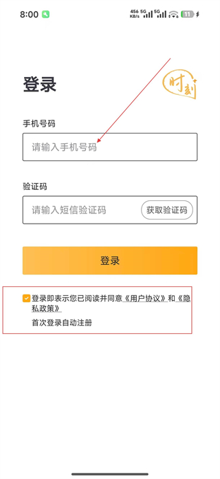 1、進入登錄頁面,在手機號碼輸入框填寫對應號碼,點擊獲取驗證碼并填入短信內的數字,勾選相關協議后點擊登錄按鈕,首次登錄會自動完成注冊。